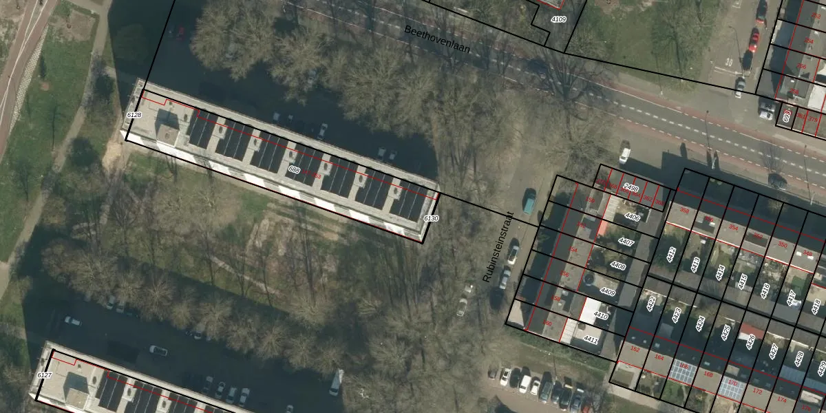 Het perceel waarop Rubinsteinstraat 189 staat heeft een oppervlakte van 977 m². Dit is een groot perceel. De perceeloppervlakte wordt geregistreerd door het Kadaster. Gedetailleerde informatie over de maten van dit perceel kunt u vinden in het rapport Kadastrale kaart met maatvoering van Rubinsteinstraat 189.