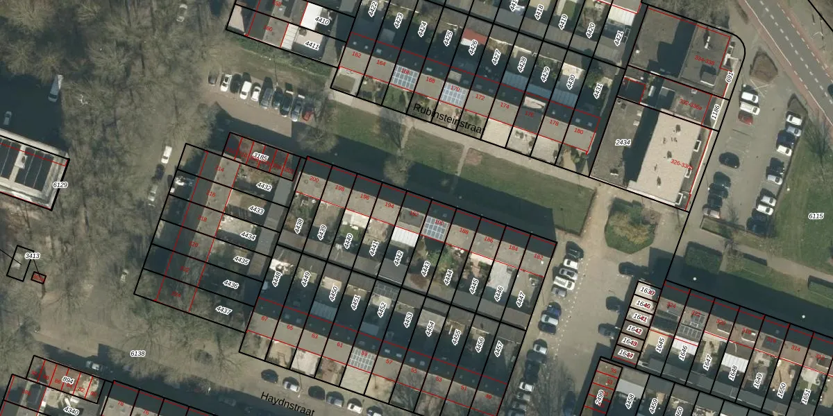 Rubinsteinstraat 192 is gelegen op kadastraal perceel TBG01S4442. Deze kadastrale aanduiding is uniek en wordt gebruikt door het Kadaster om eigendomsrechten en andere zakelijke rechten vast te leggen. Het perceel maakt onderdeel uit van de kadastrale gemeente Tilburg.