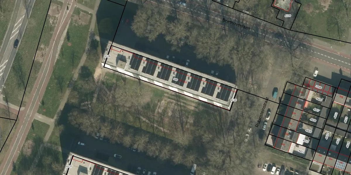 Het perceel waarop Rubinsteinstraat 231 staat heeft een oppervlakte van 977 m². Dit is een groot perceel. De perceeloppervlakte wordt geregistreerd door het Kadaster. Gedetailleerde informatie over de maten van dit perceel kunt u vinden in het rapport Kadastrale kaart met maatvoering van Rubinsteinstraat 231.