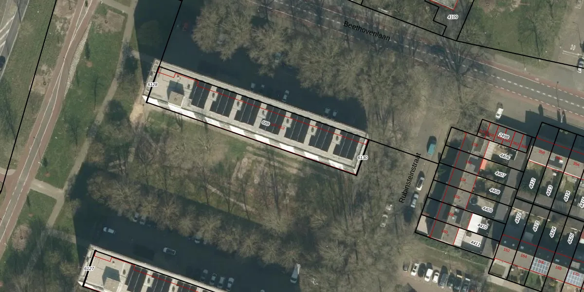 Het perceel waarop Rubinsteinstraat 233 staat heeft een oppervlakte van 977 m². Dit is een groot perceel. De perceeloppervlakte wordt geregistreerd door het Kadaster. Gedetailleerde informatie over de maten van dit perceel kunt u vinden in het rapport Kadastrale kaart met maatvoering van Rubinsteinstraat 233.