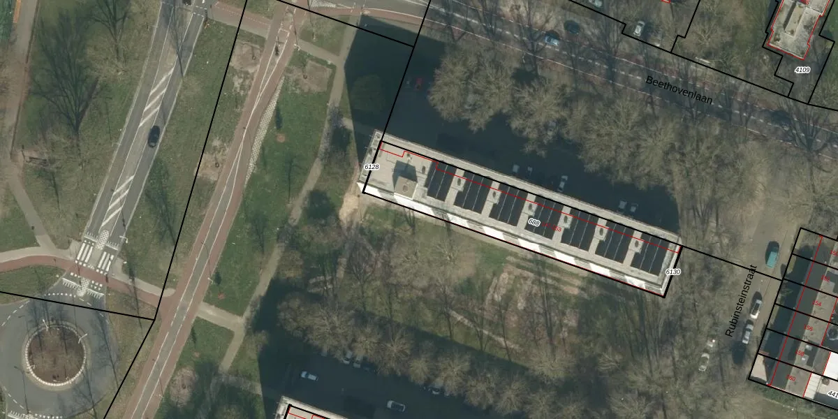 Het perceel waarop Rubinsteinstraat 241 staat heeft een oppervlakte van 977 m². Dit is een groot perceel. De perceeloppervlakte wordt geregistreerd door het Kadaster. Gedetailleerde informatie over de maten van dit perceel kunt u vinden in het rapport Kadastrale kaart met maatvoering van Rubinsteinstraat 241.