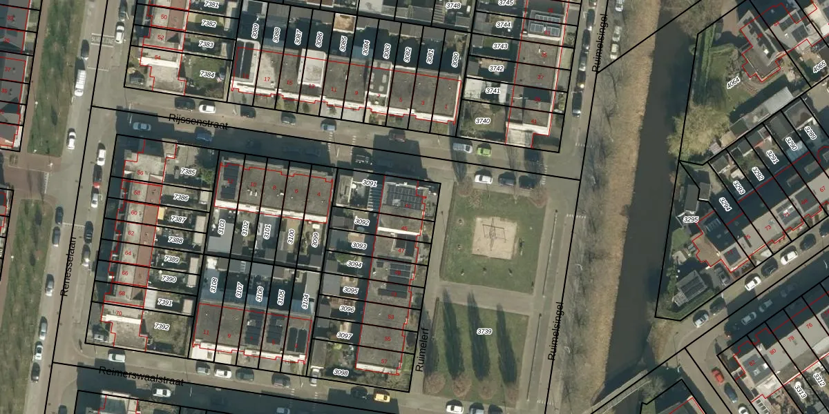 Het perceel waarop Ruimelerf 43 staat heeft een oppervlakte van 233 m². Dit is een middelgroot perceel. De perceeloppervlakte wordt geregistreerd door het Kadaster. Gedetailleerde informatie over de maten van dit perceel kunt u vinden in het rapport Kadastrale kaart met maatvoering van Ruimelerf 43.