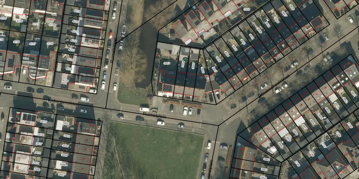 Ruimelplein 2 is gelegen op kadastraal perceel TBG01AG3954. Deze kadastrale aanduiding is uniek en wordt gebruikt door het Kadaster om eigendomsrechten en andere zakelijke rechten vast te leggen. Het perceel maakt onderdeel uit van de kadastrale gemeente Tilburg.