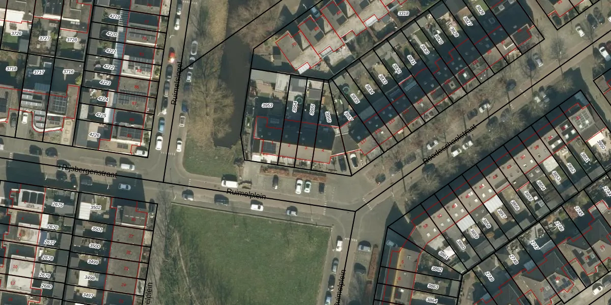 Ruimelplein 3 is gelegen op kadastraal perceel TBG01AG3955. Deze kadastrale aanduiding is uniek en wordt gebruikt door het Kadaster om eigendomsrechten en andere zakelijke rechten vast te leggen. Het perceel maakt onderdeel uit van de kadastrale gemeente Tilburg.