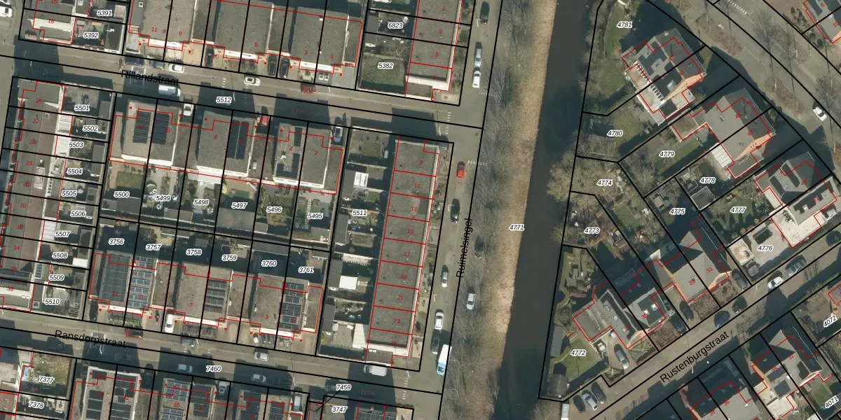 Ruimelsingel 13 is gelegen op kadastraal perceel TBG01AG5511. Deze kadastrale aanduiding is uniek en wordt gebruikt door het Kadaster om eigendomsrechten en andere zakelijke rechten vast te leggen. Het perceel maakt onderdeel uit van de kadastrale gemeente Tilburg.