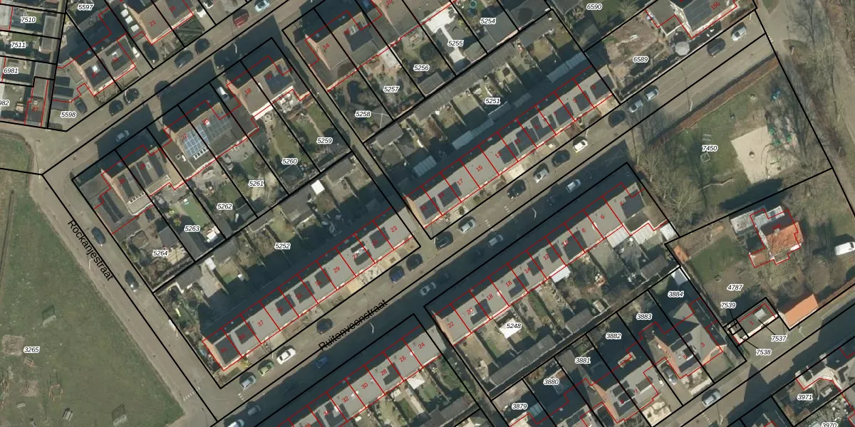 Ruitenveenstraat 21 is gelegen op kadastraal perceel TBG01AG5251. Deze kadastrale aanduiding is uniek en wordt gebruikt door het Kadaster om eigendomsrechten en andere zakelijke rechten vast te leggen. Het perceel maakt onderdeel uit van de kadastrale gemeente Tilburg.