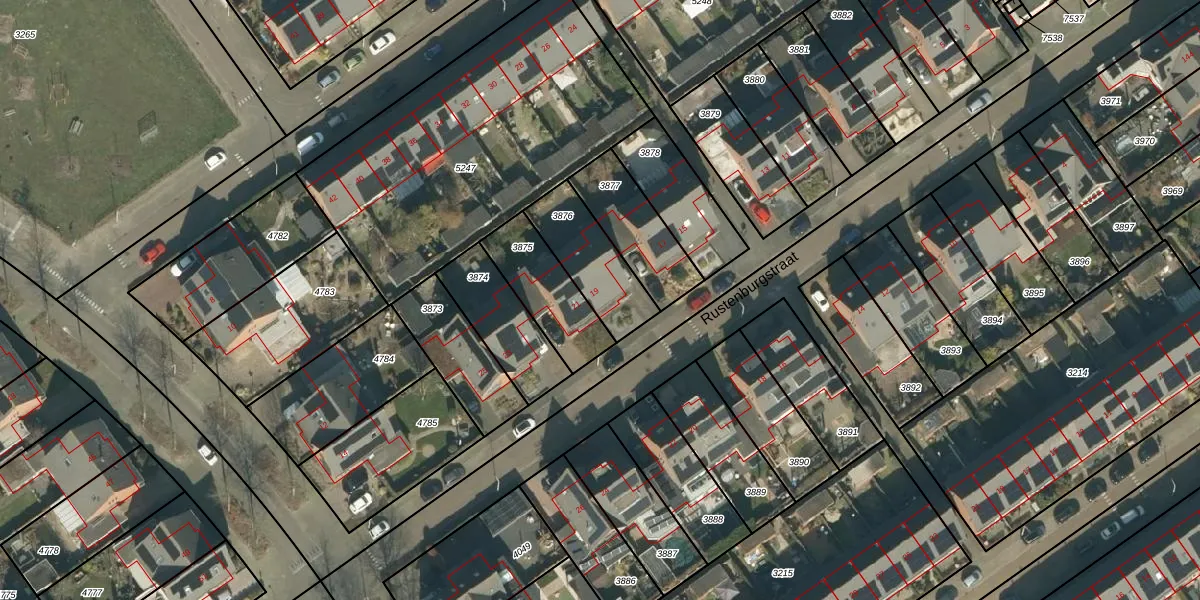 Rustenburgstraat 19 is gelegen op kadastraal perceel TBG01AG3876. Deze kadastrale aanduiding is uniek en wordt gebruikt door het Kadaster om eigendomsrechten en andere zakelijke rechten vast te leggen. Het perceel maakt onderdeel uit van de kadastrale gemeente Tilburg.