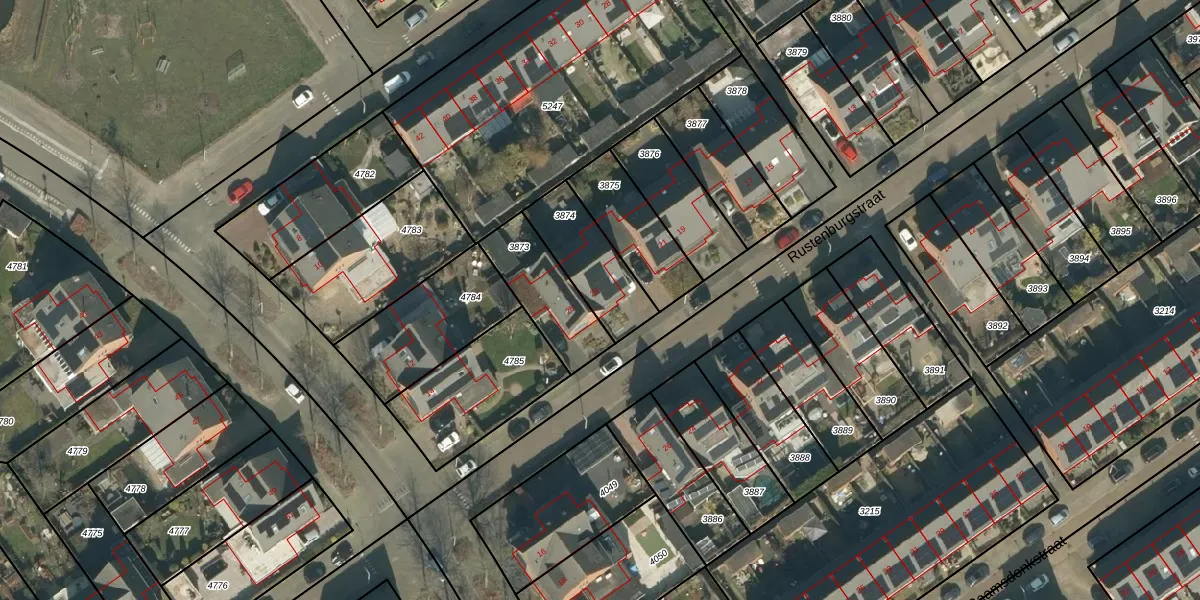 Rustenburgstraat 23 is gelegen op kadastraal perceel TBG01AG3874. Deze kadastrale aanduiding is uniek en wordt gebruikt door het Kadaster om eigendomsrechten en andere zakelijke rechten vast te leggen. Het perceel maakt onderdeel uit van de kadastrale gemeente Tilburg.
