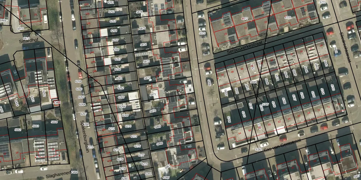 Sas van Gentstraat 39 is gelegen op kadastraal perceel TBG01AG5871. Deze kadastrale aanduiding is uniek en wordt gebruikt door het Kadaster om eigendomsrechten en andere zakelijke rechten vast te leggen. Het perceel maakt onderdeel uit van de kadastrale gemeente Tilburg.
