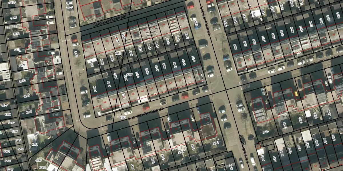 Sas van Gentstraat 68 is gelegen op kadastraal perceel TBG01AG5756. Deze kadastrale aanduiding is uniek en wordt gebruikt door het Kadaster om eigendomsrechten en andere zakelijke rechten vast te leggen. Het perceel maakt onderdeel uit van de kadastrale gemeente Tilburg.