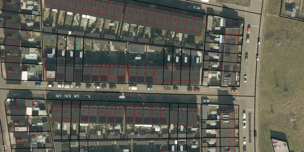 Schagenstraat 13 is gelegen op kadastraal perceel TBG01AG6205. Deze kadastrale aanduiding is uniek en wordt gebruikt door het Kadaster om eigendomsrechten en andere zakelijke rechten vast te leggen. Het perceel maakt onderdeel uit van de kadastrale gemeente Tilburg.