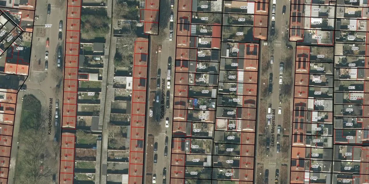 Het perceel waarop Schalk Burgerstraat 18-a staat heeft een oppervlakte van 154 m². Dit is een middelgroot perceel. De perceeloppervlakte wordt geregistreerd door het Kadaster. Gedetailleerde informatie over de maten van dit perceel kunt u vinden in het rapport Kadastrale kaart met maatvoering van Schalk Burgerstraat 18-a.