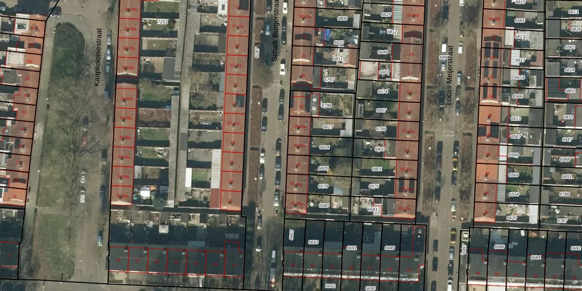 Schalk Burgerstraat 30 is gelegen op kadastraal perceel TBG01Q6604. Deze kadastrale aanduiding is uniek en wordt gebruikt door het Kadaster om eigendomsrechten en andere zakelijke rechten vast te leggen. Het perceel maakt onderdeel uit van de kadastrale gemeente Tilburg.