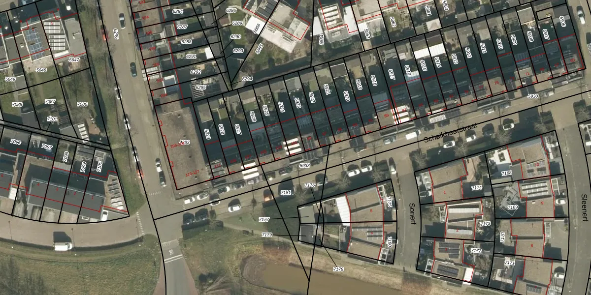 Schalkhaarstraat 101 is gelegen op kadastraal perceel TBG01AG5924. Deze kadastrale aanduiding is uniek en wordt gebruikt door het Kadaster om eigendomsrechten en andere zakelijke rechten vast te leggen. Het perceel maakt onderdeel uit van de kadastrale gemeente Tilburg.