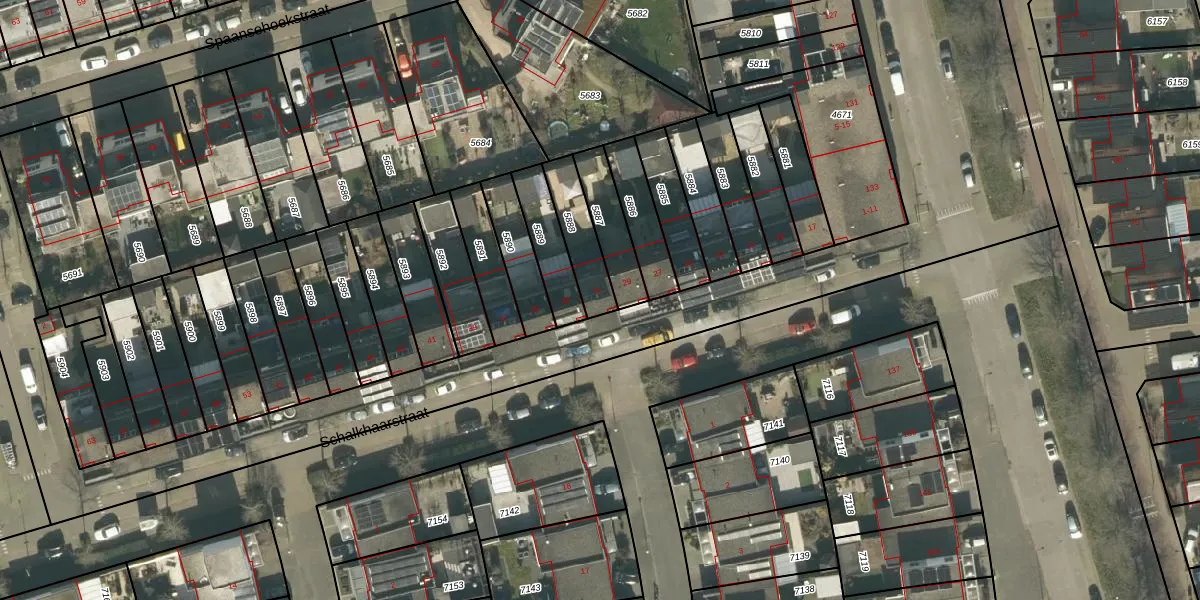 Schalkhaarstraat 31 is gelegen op kadastraal perceel TBG01AG5888. Deze kadastrale aanduiding is uniek en wordt gebruikt door het Kadaster om eigendomsrechten en andere zakelijke rechten vast te leggen. Het perceel maakt onderdeel uit van de kadastrale gemeente Tilburg.