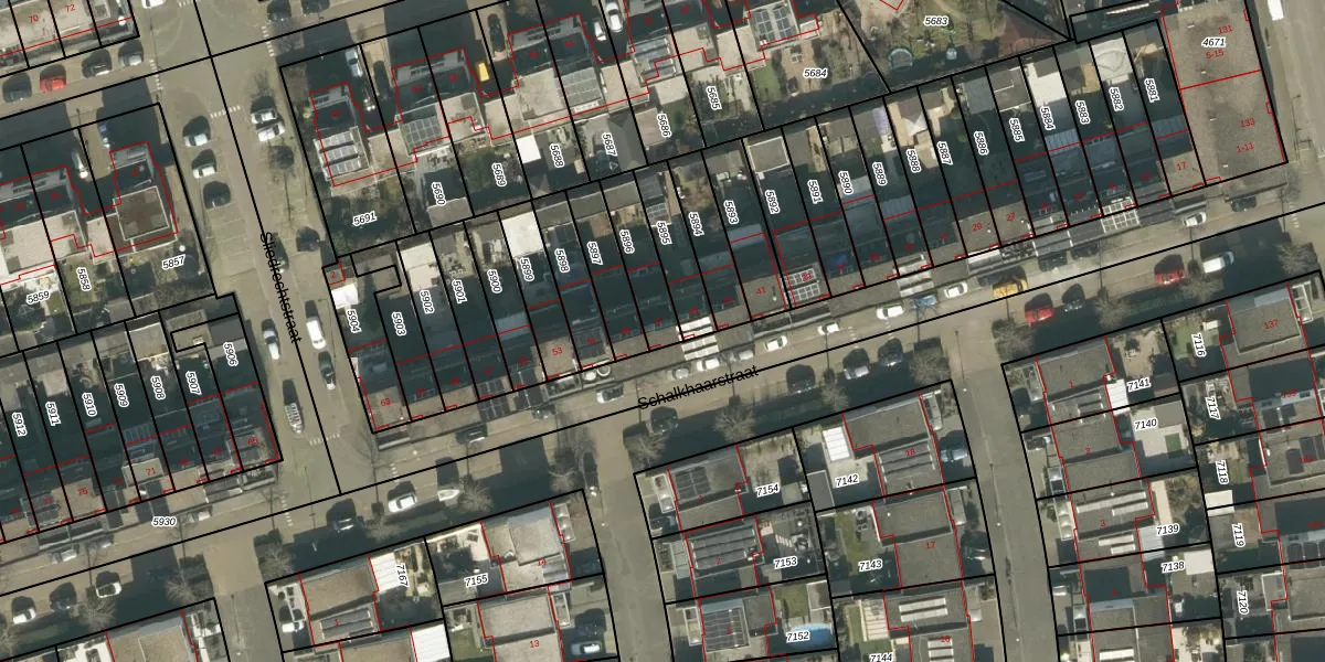Schalkhaarstraat 47 is gelegen op kadastraal perceel TBG01AG5896. Deze kadastrale aanduiding is uniek en wordt gebruikt door het Kadaster om eigendomsrechten en andere zakelijke rechten vast te leggen. Het perceel maakt onderdeel uit van de kadastrale gemeente Tilburg.