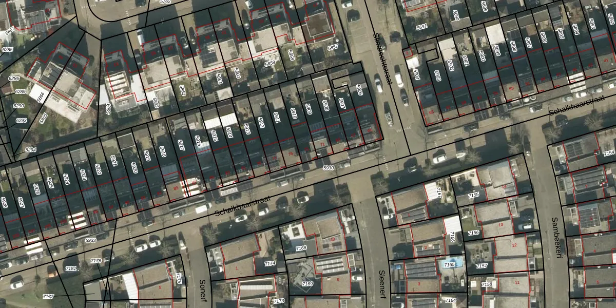 Schalkhaarstraat 73 is gelegen op kadastraal perceel TBG01AG5910. Deze kadastrale aanduiding is uniek en wordt gebruikt door het Kadaster om eigendomsrechten en andere zakelijke rechten vast te leggen. Het perceel maakt onderdeel uit van de kadastrale gemeente Tilburg.