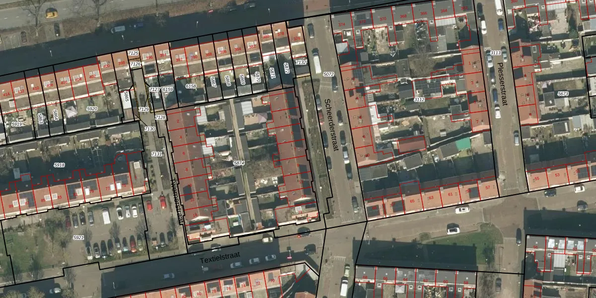 Scheerderstraat 7 is gelegen op kadastraal perceel TBG01O5874. Deze kadastrale aanduiding is uniek en wordt gebruikt door het Kadaster om eigendomsrechten en andere zakelijke rechten vast te leggen. Het perceel maakt onderdeel uit van de kadastrale gemeente Tilburg.
