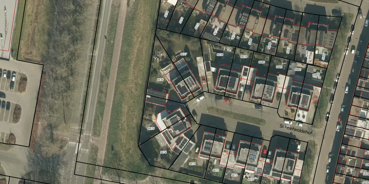 Scheerwoldehof 9 is gelegen op kadastraal perceel TBG01AG6676. Deze kadastrale aanduiding is uniek en wordt gebruikt door het Kadaster om eigendomsrechten en andere zakelijke rechten vast te leggen. Het perceel maakt onderdeel uit van de kadastrale gemeente Tilburg.
