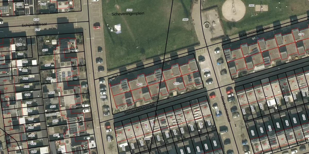 Het perceel waarop Scheveningenplein 20 staat heeft een oppervlakte van 785 m². Dit is een groot perceel. De perceeloppervlakte wordt geregistreerd door het Kadaster. Gedetailleerde informatie over de maten van dit perceel kunt u vinden in het rapport Kadastrale kaart met maatvoering van Scheveningenplein 20.