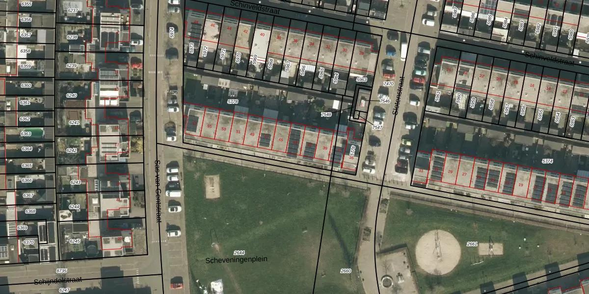 Scheveningenplein 43 is gelegen op kadastraal perceel TBG01AG5778. Deze kadastrale aanduiding is uniek en wordt gebruikt door het Kadaster om eigendomsrechten en andere zakelijke rechten vast te leggen. Het perceel maakt onderdeel uit van de kadastrale gemeente Tilburg.