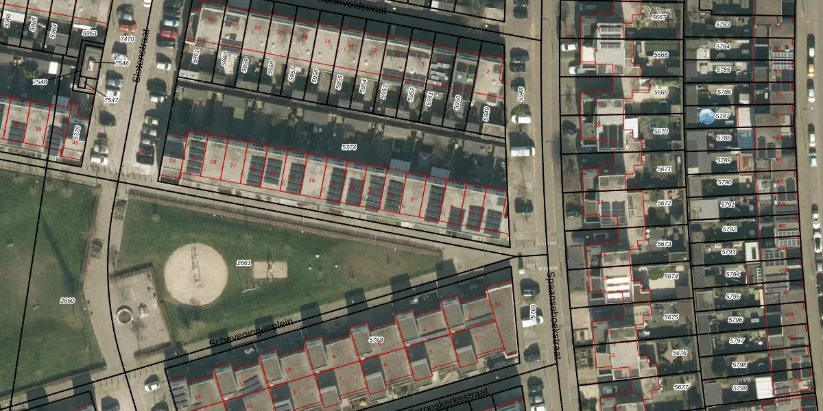 Scheveningenplein 9 is gelegen op kadastraal perceel TBG01AG5774. Deze kadastrale aanduiding is uniek en wordt gebruikt door het Kadaster om eigendomsrechten en andere zakelijke rechten vast te leggen. Het perceel maakt onderdeel uit van de kadastrale gemeente Tilburg.