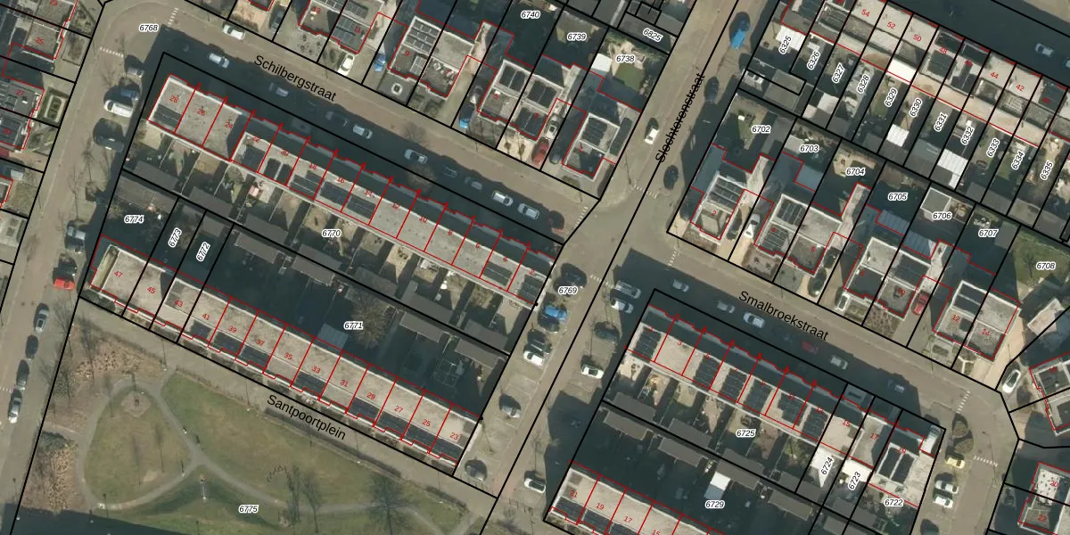 Het perceel waarop Schilbergstraat 2 staat heeft een oppervlakte van 1878 m². Dit is een zeer groot perceel. De perceeloppervlakte wordt geregistreerd door het Kadaster. Gedetailleerde informatie over de maten van dit perceel kunt u vinden in het rapport Kadastrale kaart met maatvoering van Schilbergstraat 2.