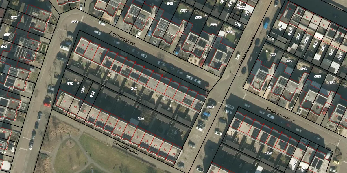 Het perceel waarop Schilbergstraat 8 staat heeft een oppervlakte van 1878 m². Dit is een zeer groot perceel. De perceeloppervlakte wordt geregistreerd door het Kadaster. Gedetailleerde informatie over de maten van dit perceel kunt u vinden in het rapport Kadastrale kaart met maatvoering van Schilbergstraat 8.