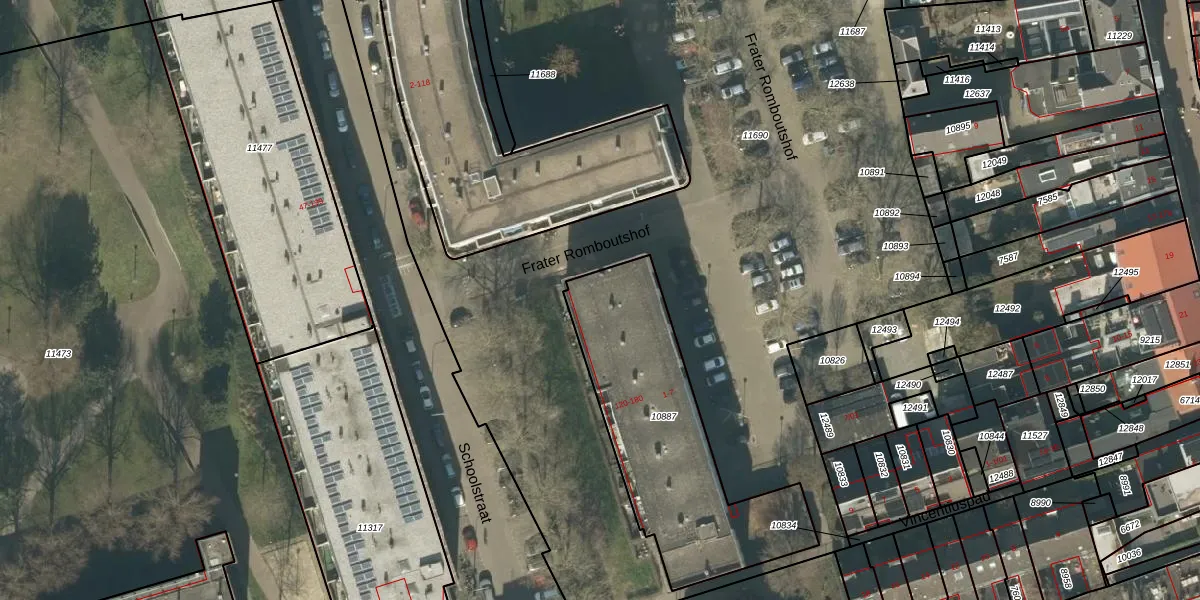 Schoolstraat 136 is gelegen op kadastraal perceel TBG01M10887. Deze kadastrale aanduiding is uniek en wordt gebruikt door het Kadaster om eigendomsrechten en andere zakelijke rechten vast te leggen. Het perceel maakt onderdeel uit van de kadastrale gemeente Tilburg.