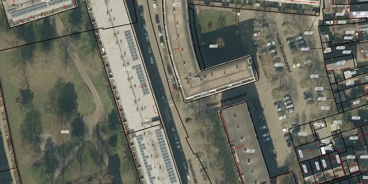 Schoolstraat 14 is gelegen op kadastraal perceel TBG01M11689. Deze kadastrale aanduiding is uniek en wordt gebruikt door het Kadaster om eigendomsrechten en andere zakelijke rechten vast te leggen. Het perceel maakt onderdeel uit van de kadastrale gemeente Tilburg.