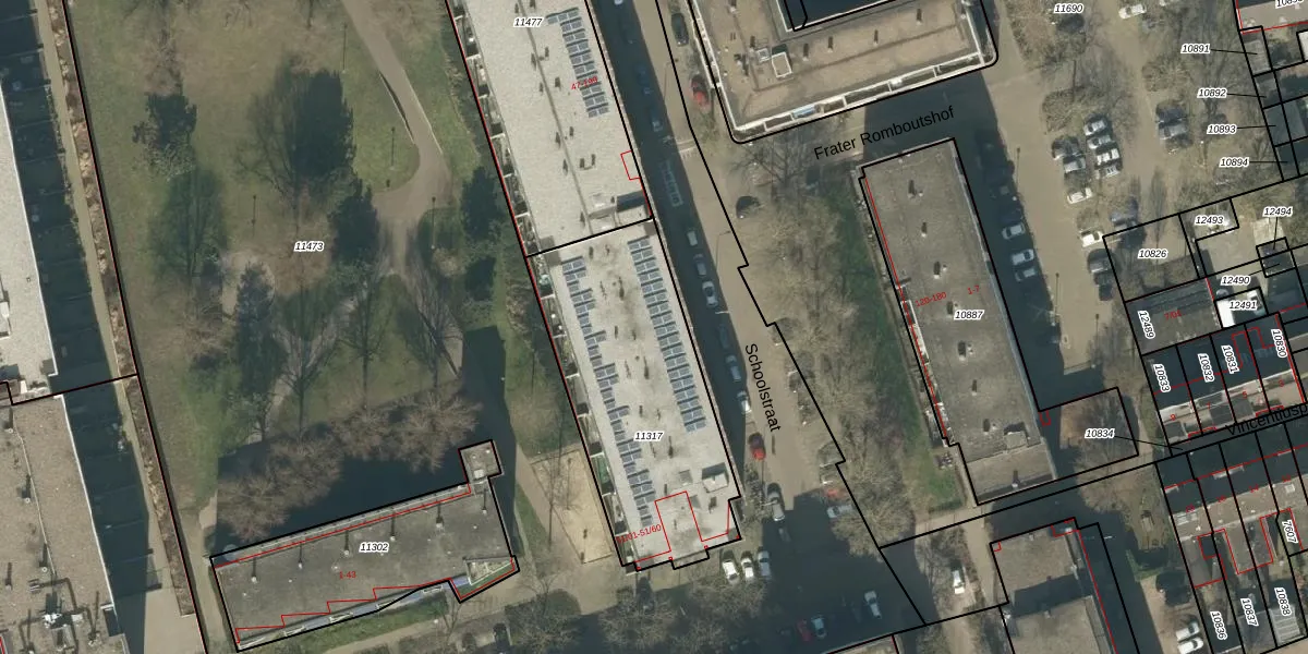 Schoolstraat 161 is gelegen op kadastraal perceel TBG01M11317. Deze kadastrale aanduiding is uniek en wordt gebruikt door het Kadaster om eigendomsrechten en andere zakelijke rechten vast te leggen. Het perceel maakt onderdeel uit van de kadastrale gemeente Tilburg.