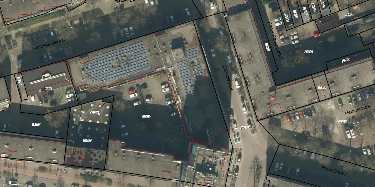 Schoolstraat 349 is gelegen op kadastraal perceel TBG01M10976. Deze kadastrale aanduiding is uniek en wordt gebruikt door het Kadaster om eigendomsrechten en andere zakelijke rechten vast te leggen. Het perceel maakt onderdeel uit van de kadastrale gemeente Tilburg.