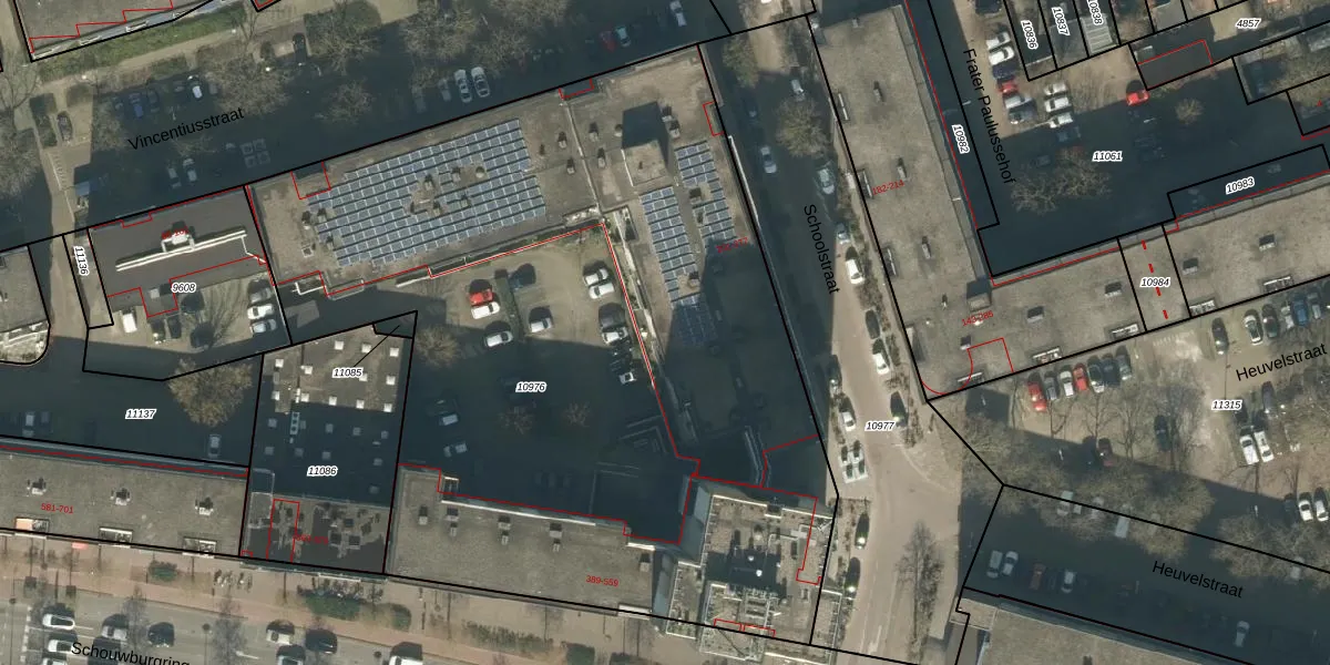 Schoolstraat 371 is gelegen op kadastraal perceel TBG01M10976. Deze kadastrale aanduiding is uniek en wordt gebruikt door het Kadaster om eigendomsrechten en andere zakelijke rechten vast te leggen. Het perceel maakt onderdeel uit van de kadastrale gemeente Tilburg.