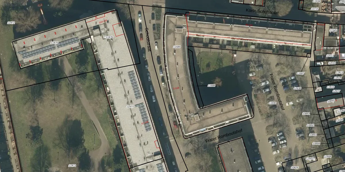 Schoolstraat 8 is gelegen op kadastraal perceel TBG01M11689. Deze kadastrale aanduiding is uniek en wordt gebruikt door het Kadaster om eigendomsrechten en andere zakelijke rechten vast te leggen. Het perceel maakt onderdeel uit van de kadastrale gemeente Tilburg.