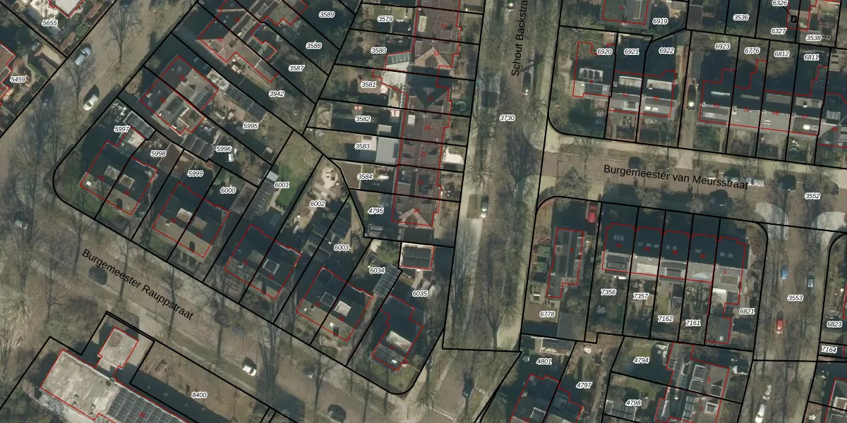 Schout Backstraat 25 is gelegen op kadastraal perceel TBG01P4795. Deze kadastrale aanduiding is uniek en wordt gebruikt door het Kadaster om eigendomsrechten en andere zakelijke rechten vast te leggen. Het perceel maakt onderdeel uit van de kadastrale gemeente Tilburg.