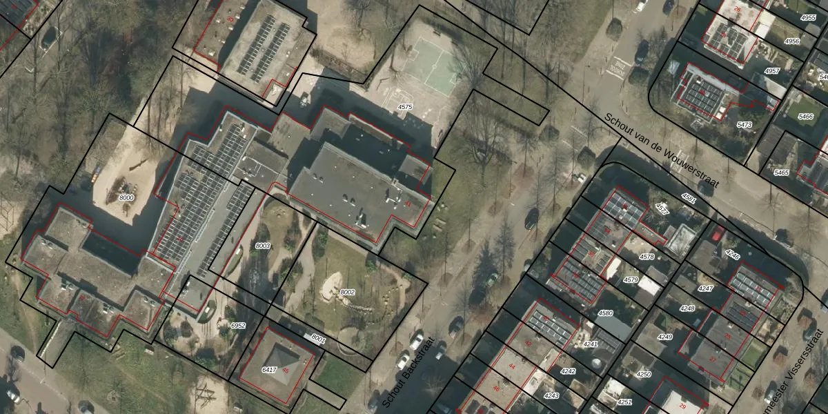 Schout Backstraat 41 is gelegen op kadastraal perceel TBG01Q4575. Deze kadastrale aanduiding is uniek en wordt gebruikt door het Kadaster om eigendomsrechten en andere zakelijke rechten vast te leggen. Het perceel maakt onderdeel uit van de kadastrale gemeente Tilburg.