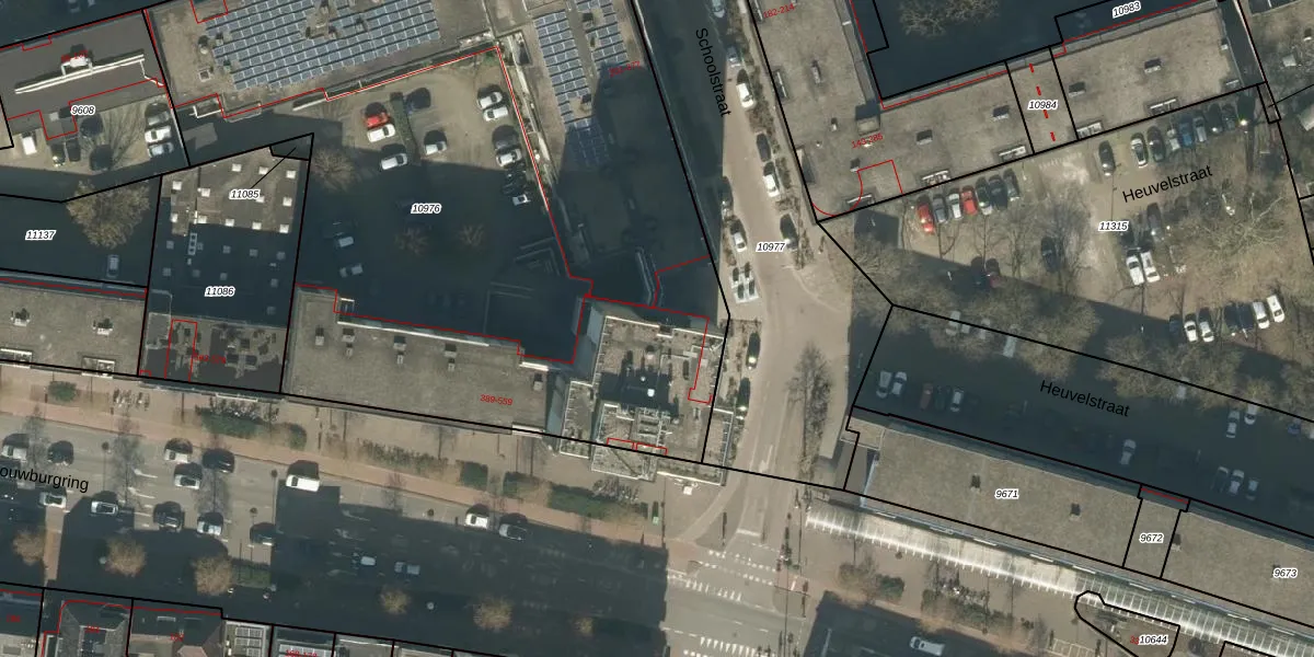 Het perceel waarop Schouwburgring 547 staat heeft een oppervlakte van 5075 m². Dit is een zeer groot perceel. De perceeloppervlakte wordt geregistreerd door het Kadaster. Gedetailleerde informatie over de maten van dit perceel kunt u vinden in het rapport Kadastrale kaart met maatvoering van Schouwburgring 547.