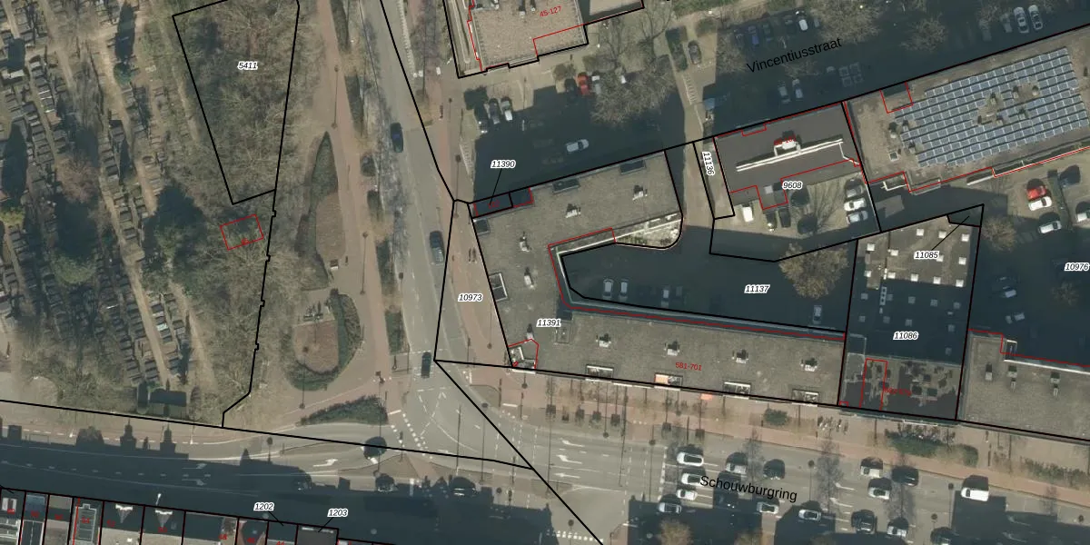 Het perceel waarop Schouwburgring 599 staat heeft een oppervlakte van 1473 m². Dit is een zeer groot perceel. De perceeloppervlakte wordt geregistreerd door het Kadaster. Gedetailleerde informatie over de maten van dit perceel kunt u vinden in het rapport Kadastrale kaart met maatvoering van Schouwburgring 599.
