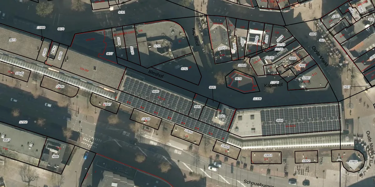 Het adres is gelegen op perceel 9680 in de sectie M en de kadastrale gemeente Tilburg. De kadastrale aanduiding is aldus TBG01-M-9680. De gemiddelde perceelgrootte in Tilburg is 1264,33 m². Dit perceel is kleiner: de perceeloppervlakte bedraagt 520 m². Het grootste perceel in de kadastrale gemeente is 87,4 ha. Het kleinste perceel heeft een oppervlakte van 0 m². Op het perceel zijn 62 adressen aanwezig. De huidige grenzen van het perceel zijn digitaal in de Basisregistratie Kadaster (BRK) geregistreerd op 29-04-2003.