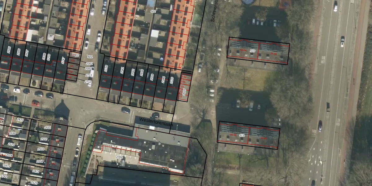 Het perceel waarop Schreierstorenstraat 21 staat heeft een oppervlakte van 91 m². Dit is een klein perceel. De perceeloppervlakte wordt geregistreerd door het Kadaster. Gedetailleerde informatie over de maten van dit perceel kunt u vinden in het rapport Kadastrale kaart met maatvoering van Schreierstorenstraat 21.