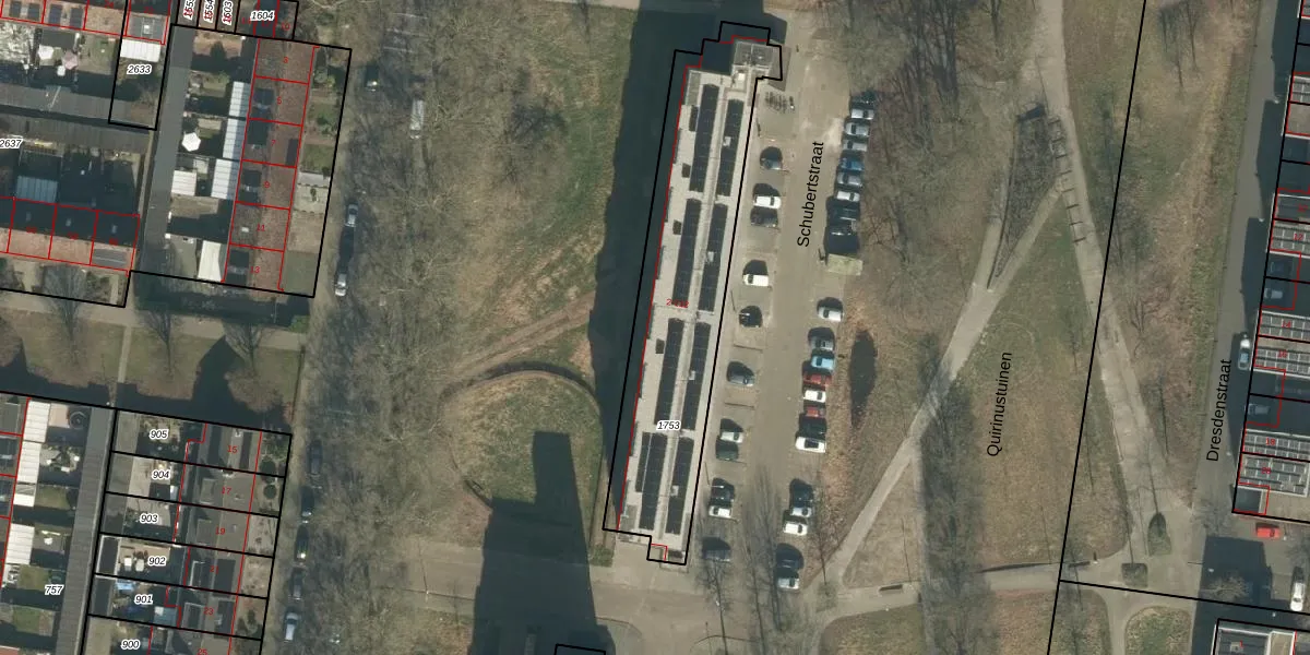 Het perceel waarop Schubertstraat 104 staat heeft een oppervlakte van 1041 m². Dit is een zeer groot perceel. De perceeloppervlakte wordt geregistreerd door het Kadaster. Gedetailleerde informatie over de maten van dit perceel kunt u vinden in het rapport Kadastrale kaart met maatvoering van Schubertstraat 104.