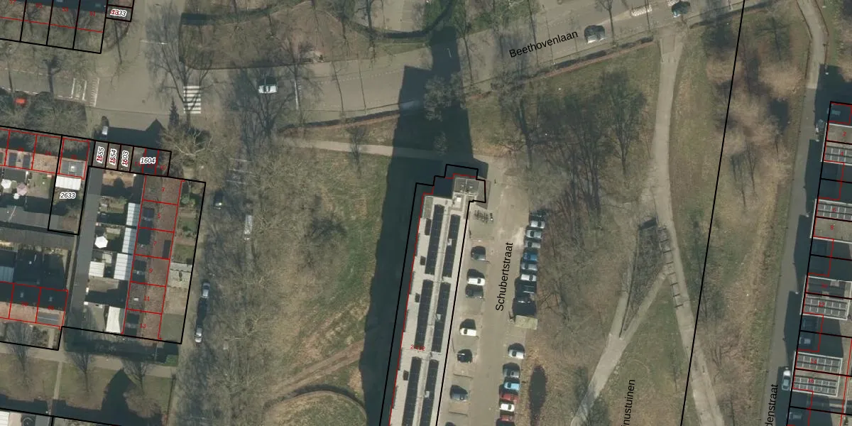 Het perceel waarop Schubertstraat 112 staat heeft een oppervlakte van 1041 m². Dit is een zeer groot perceel. De perceeloppervlakte wordt geregistreerd door het Kadaster. Gedetailleerde informatie over de maten van dit perceel kunt u vinden in het rapport Kadastrale kaart met maatvoering van Schubertstraat 112.