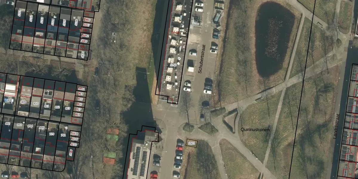 Het perceel waarop Schubertstraat 114 staat heeft een oppervlakte van 1043 m². Dit is een zeer groot perceel. De perceeloppervlakte wordt geregistreerd door het Kadaster. Gedetailleerde informatie over de maten van dit perceel kunt u vinden in het rapport Kadastrale kaart met maatvoering van Schubertstraat 114.