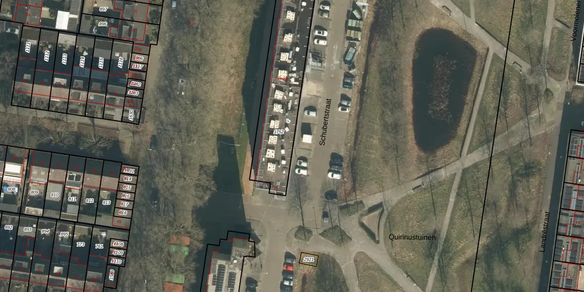 Het perceel waarop Schubertstraat 116 staat heeft een oppervlakte van 1043 m². Dit is een zeer groot perceel. De perceeloppervlakte wordt geregistreerd door het Kadaster. Gedetailleerde informatie over de maten van dit perceel kunt u vinden in het rapport Kadastrale kaart met maatvoering van Schubertstraat 116.