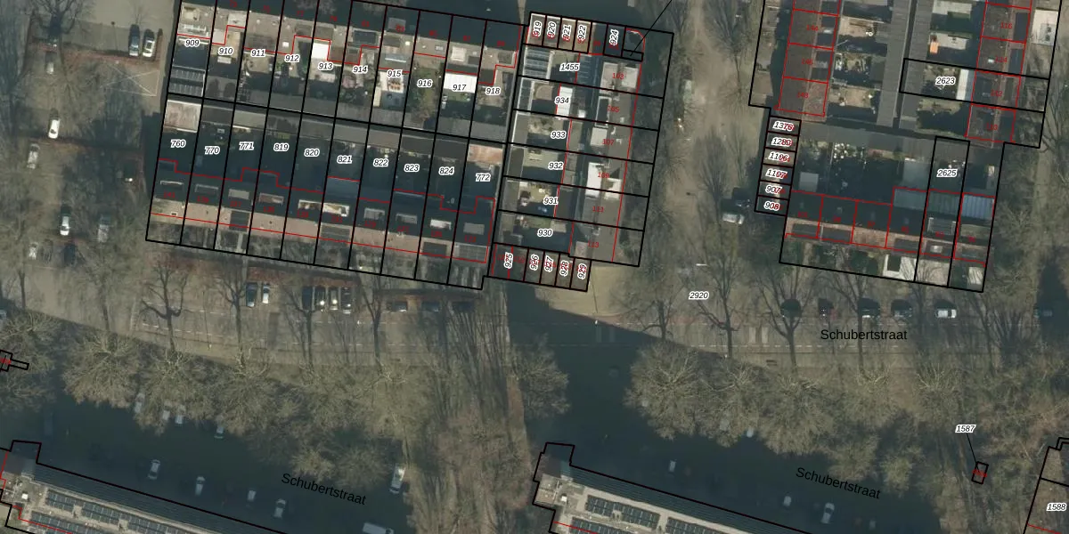 Het perceel waarop Schubertstraat 117 staat heeft een oppervlakte van 18 m². Dit is een klein perceel. De perceeloppervlakte wordt geregistreerd door het Kadaster. Gedetailleerde informatie over de maten van dit perceel kunt u vinden in het rapport Kadastrale kaart met maatvoering van Schubertstraat 117.