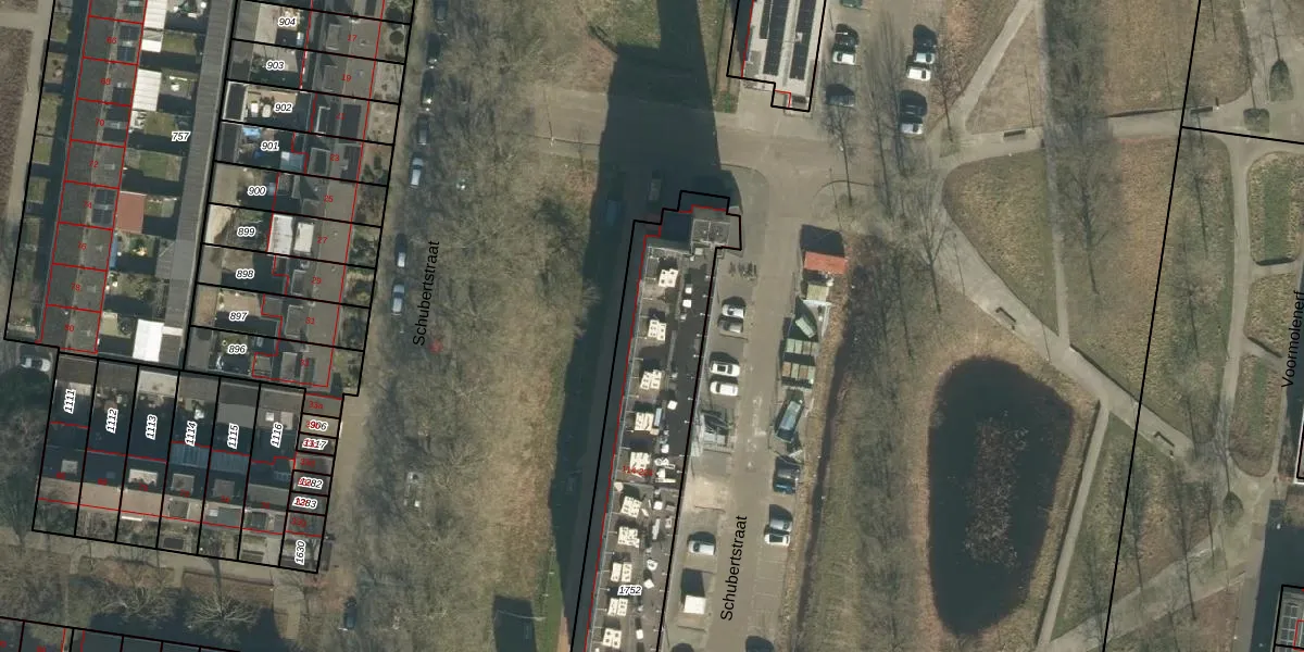 Het perceel waarop Schubertstraat 196 staat heeft een oppervlakte van 1043 m². Dit is een zeer groot perceel. De perceeloppervlakte wordt geregistreerd door het Kadaster. Gedetailleerde informatie over de maten van dit perceel kunt u vinden in het rapport Kadastrale kaart met maatvoering van Schubertstraat 196.