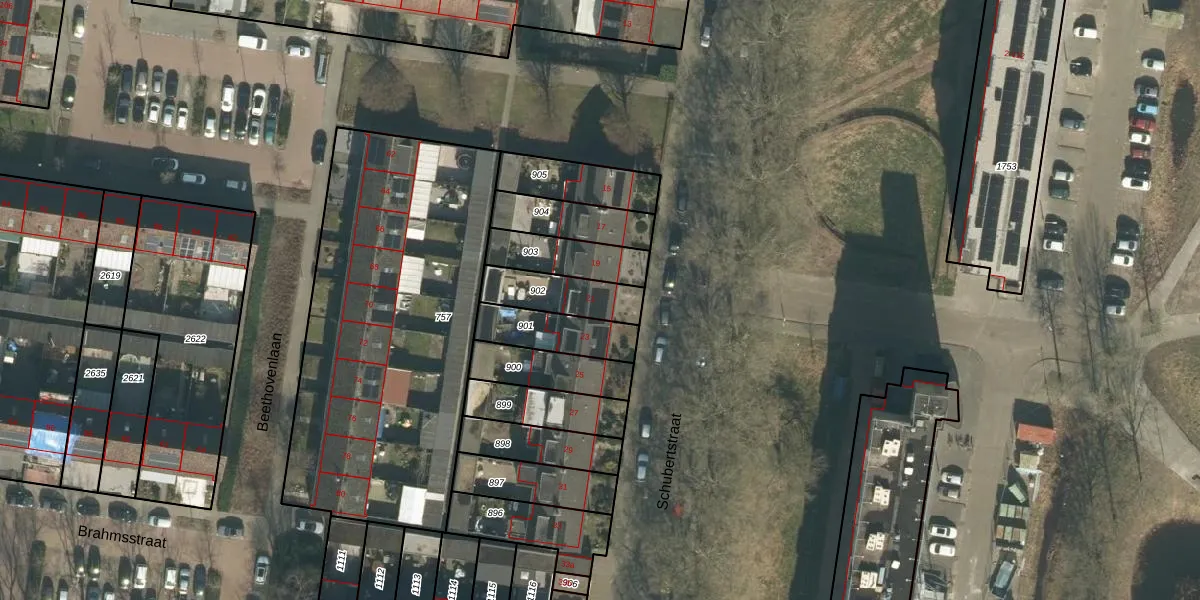 Het perceel waarop Schubertstraat 21 staat heeft een oppervlakte van 174 m². Dit is een middelgroot perceel. De perceeloppervlakte wordt geregistreerd door het Kadaster. Gedetailleerde informatie over de maten van dit perceel kunt u vinden in het rapport Kadastrale kaart met maatvoering van Schubertstraat 21.