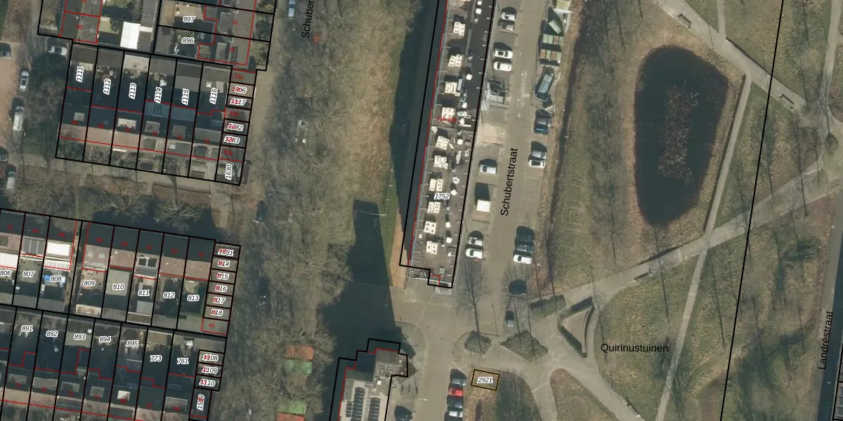 Het perceel waarop Schubertstraat 212 staat heeft een oppervlakte van 1043 m². Dit is een zeer groot perceel. De perceeloppervlakte wordt geregistreerd door het Kadaster. Gedetailleerde informatie over de maten van dit perceel kunt u vinden in het rapport Kadastrale kaart met maatvoering van Schubertstraat 212.