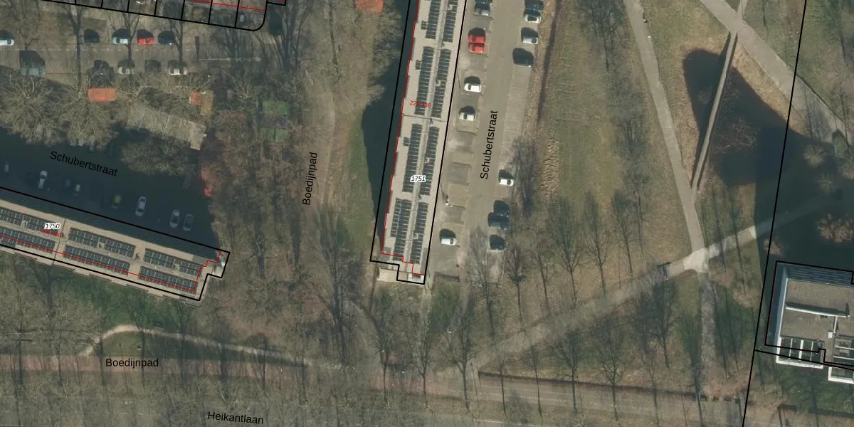 Het perceel waarop Schubertstraat 254 staat heeft een oppervlakte van 1069 m². Dit is een zeer groot perceel. De perceeloppervlakte wordt geregistreerd door het Kadaster. Gedetailleerde informatie over de maten van dit perceel kunt u vinden in het rapport Kadastrale kaart met maatvoering van Schubertstraat 254.