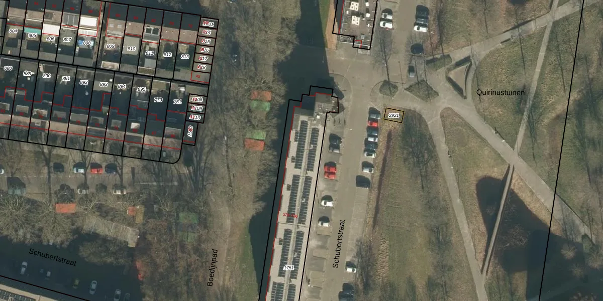 Het perceel waarop Schubertstraat 302 staat heeft een oppervlakte van 1069 m². Dit is een zeer groot perceel. De perceeloppervlakte wordt geregistreerd door het Kadaster. Gedetailleerde informatie over de maten van dit perceel kunt u vinden in het rapport Kadastrale kaart met maatvoering van Schubertstraat 302.
